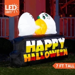 8ft Halloween Inflatable Horizontal Pumpkin And Halloween Characters