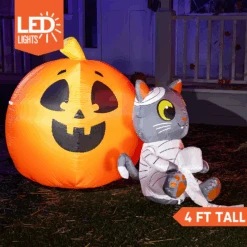 4 Ft Tall Scared Cute Ghost Hugging Tree Halloween Inflatable