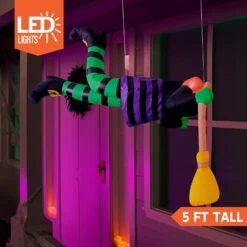 5ft Halloween Ground Breaker Skeleton Holding Head Inflatable