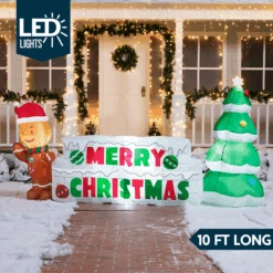 Giant Merry Christmas Sign With Tree & Gingerbread Man Inflatable (10 Ft)