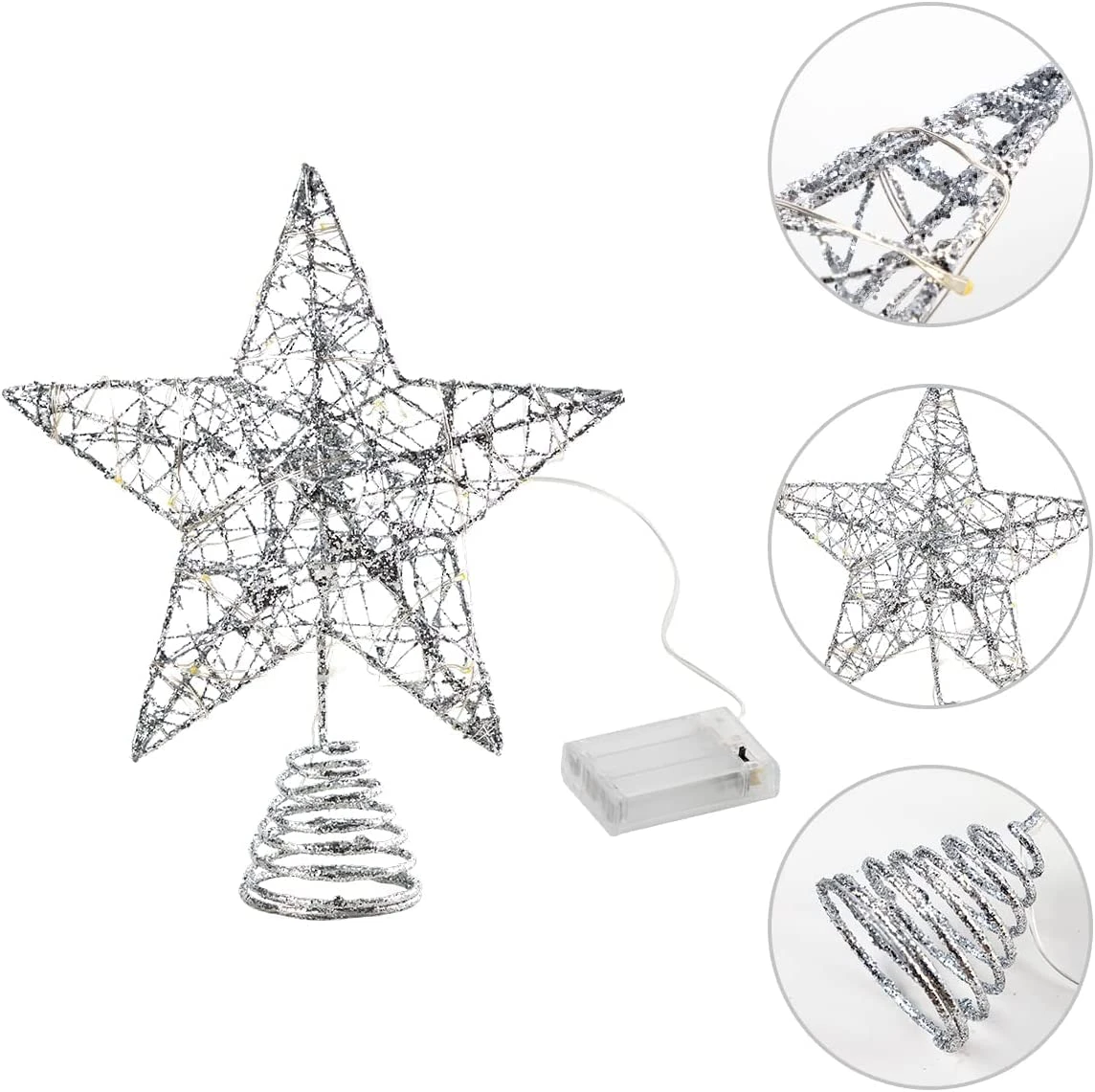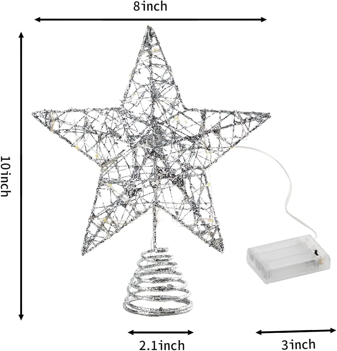 - This Star Tree Topper is perfectly coated in Silver with a shining glitter around it. When the built-in Warm White LED is lighted, its glittery coat does shine brightly along with the lights.