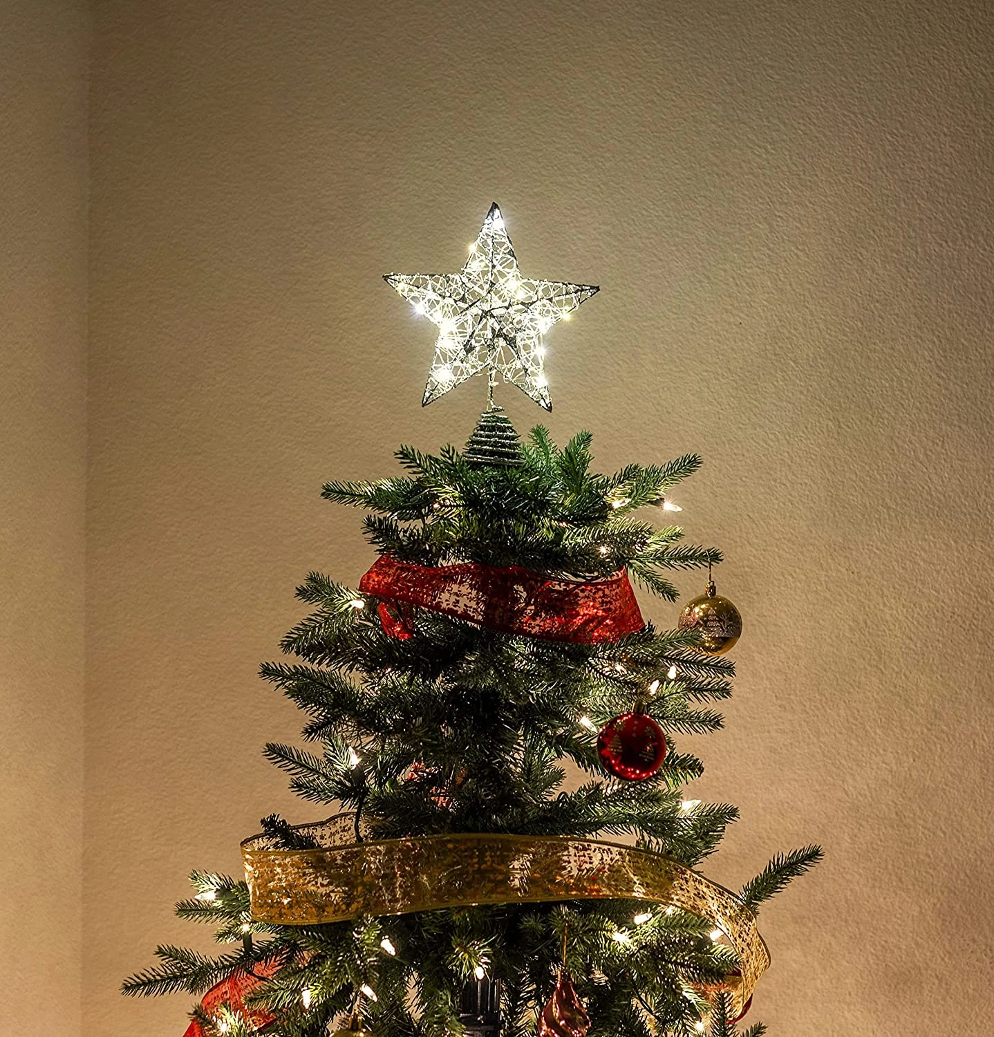 - Our Star Tree Topper comes with LED lights around it. Its 8 inch * 10inch size perfectly fits 6ft-7ft Holiday Tree providing such a bright ambiance.
