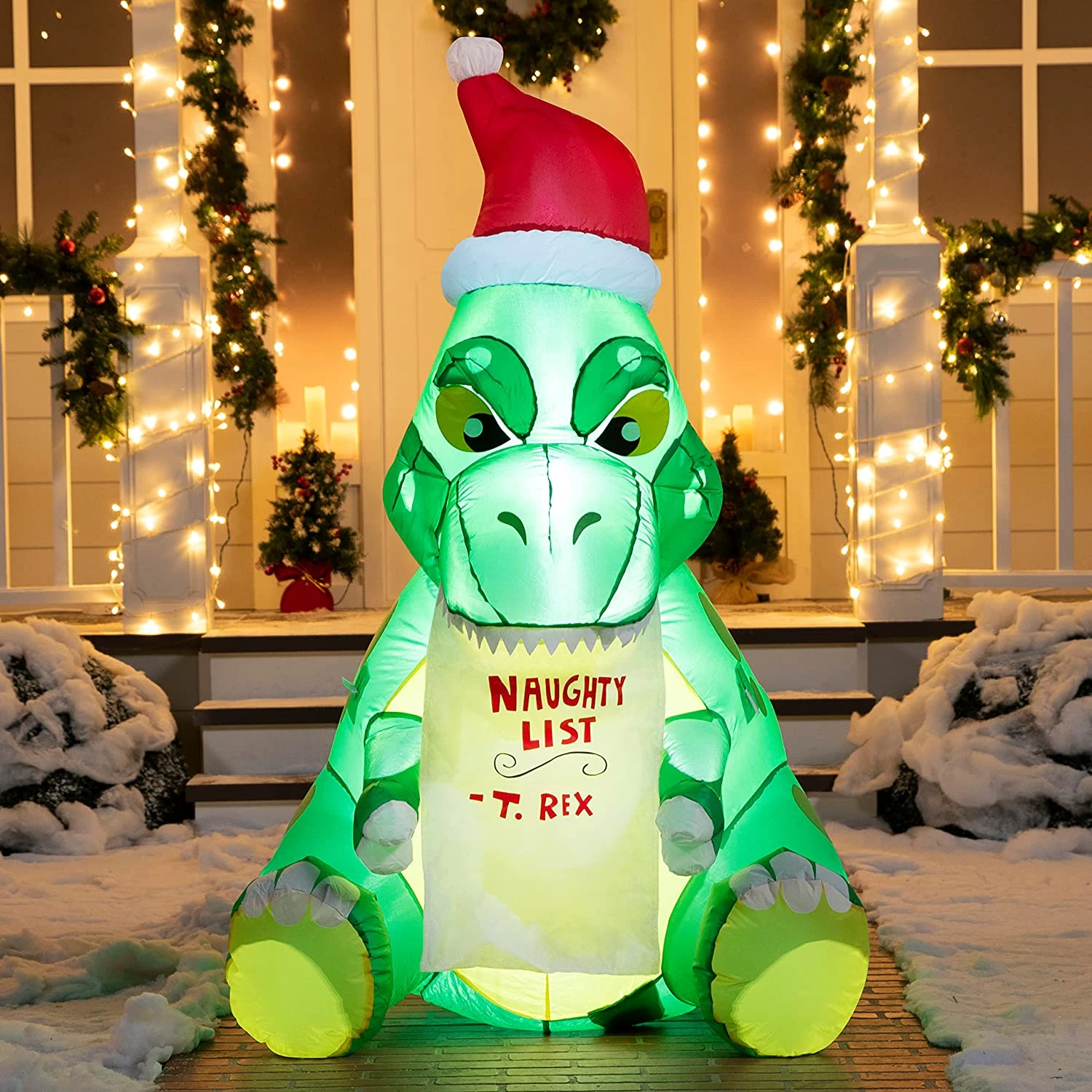 7ft Tall Dinosaur Decorating A Christmas Tree Christmas Inflatable