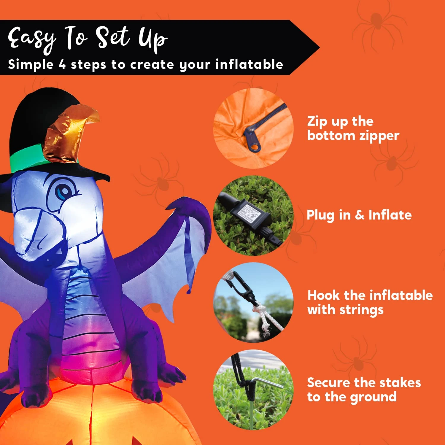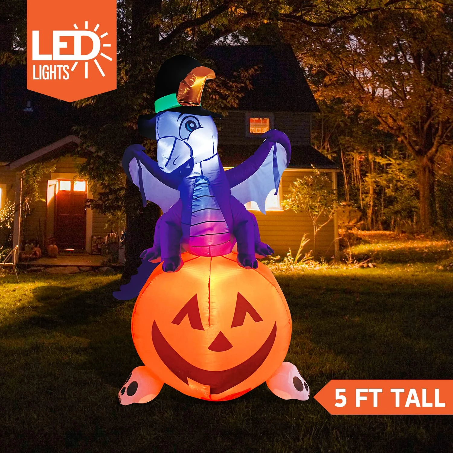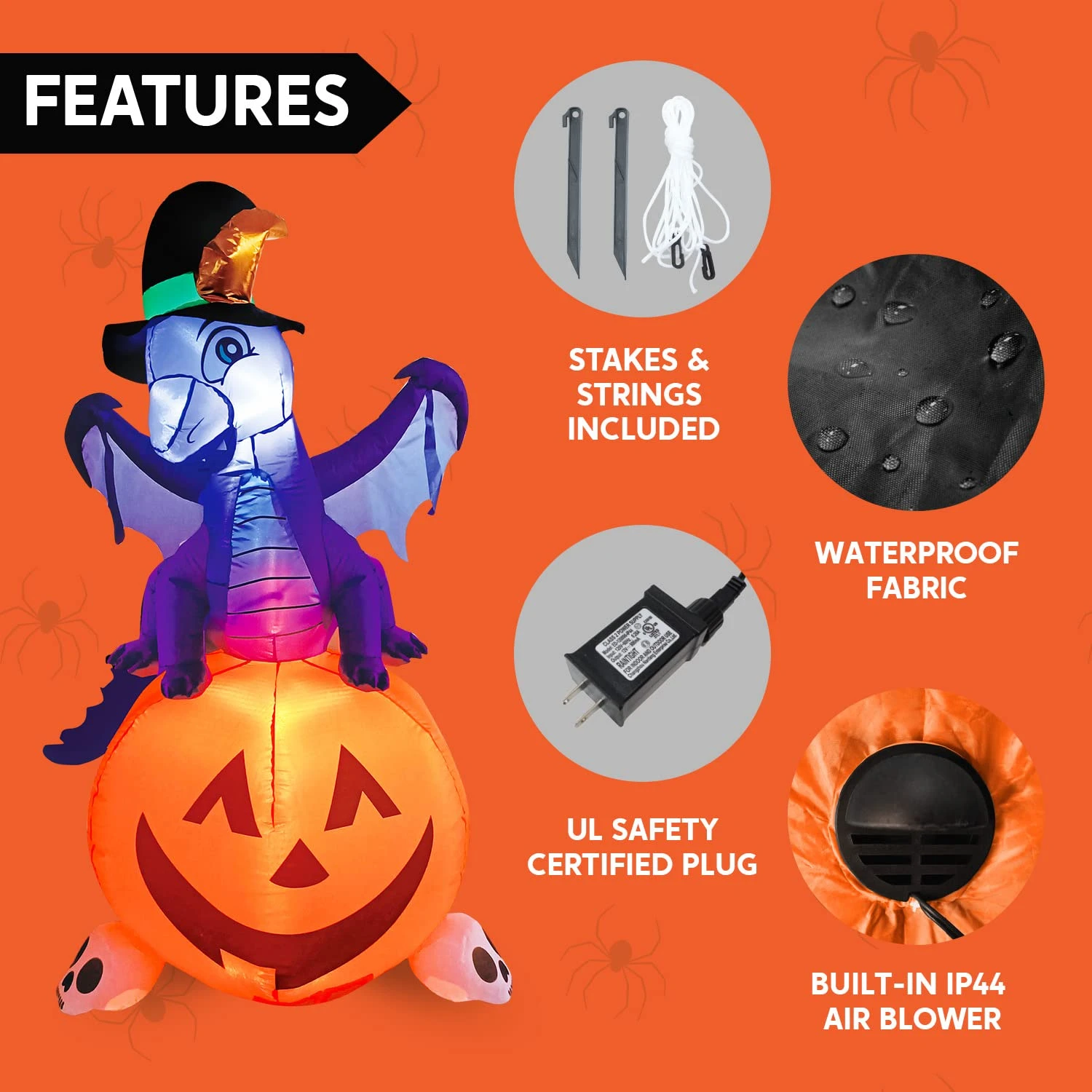 - Our 5 feet Tall Dragon On Pumpkin Inflatable comes with extended cords, ground stakes, fastened ropes, built-in sandbags, and a plug with UL certification.
